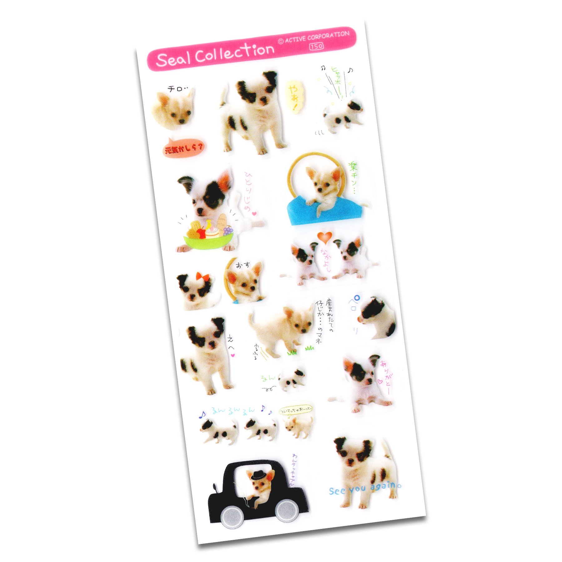 Chihuahua puppy sticker sheet by Active Corporation. Featuring 17 stickers, measures 6.5 inches tall.
