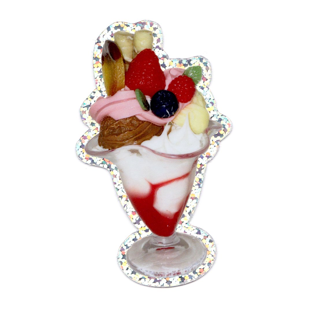 'Sweet Surprise' parfait printed on high quality glitter vinyl, measures 3 inches tall.